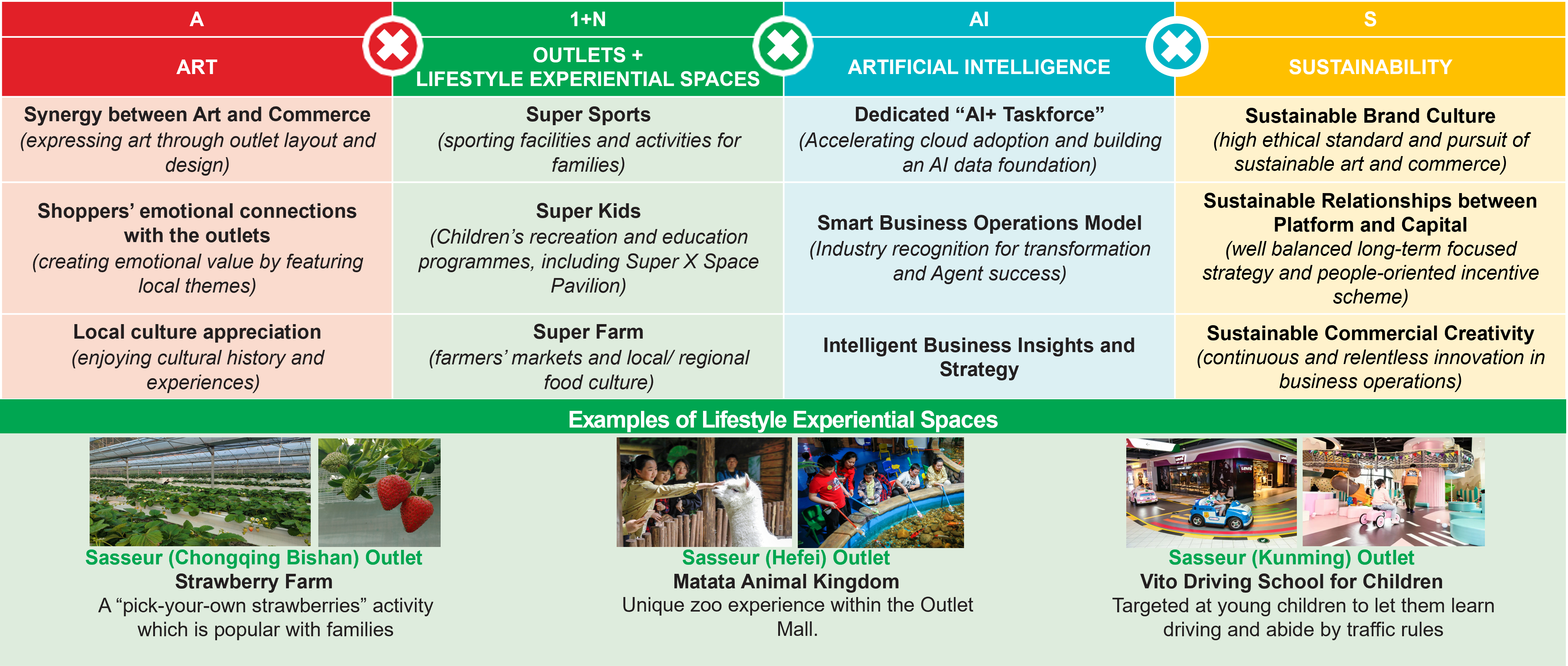 Positioning the outlets as lifestyle destinations for the whole family incorporating sustainability.